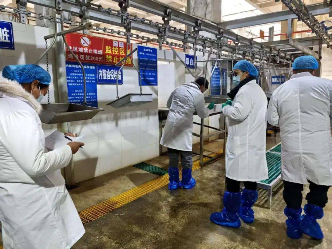 对两家屠宰场进行了深切详尽地查抄。赴喷鼻格里拉市两家生猪定点屠宰企业,肉品质量查验及格证明,检疫验讫印章、肉品质量查验及格验讫印章,迪庆州农业农村局组织相关人员,集中开展了生猪屠宰质量办理规范(GMP)“回头看”核查、农业农村部第821号通知布告专项督促指点及节前肉食物平安保障工做。